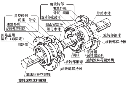 滾珠花鍵主要花鍵軸,循環(huán)套,花鍵套和滾珠組成,是一種傳動(dòng)效率很高的,傳動(dòng)可逆的,同步性好,定位精度高并且使用壽命長(zhǎng)的傳動(dòng)產(chǎn)品,能實(shí)現(xiàn)3種(旋轉(zhuǎn)、螺旋、直線)模式的運(yùn)動(dòng)。