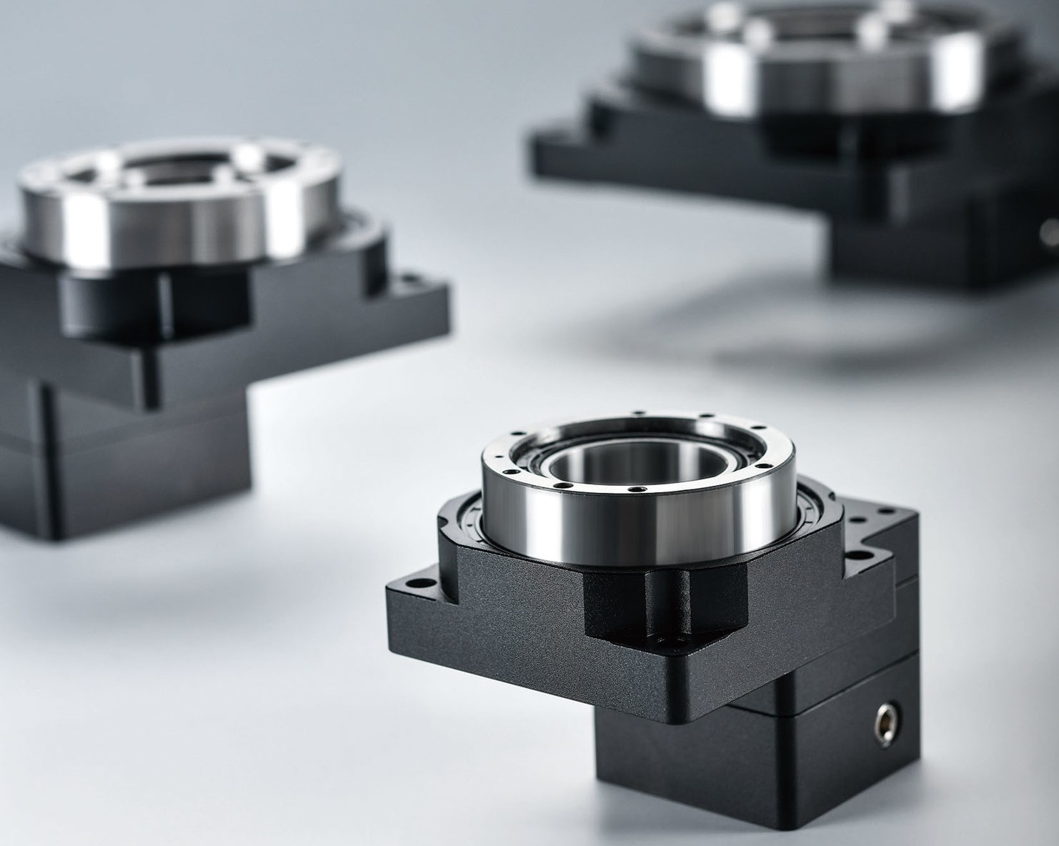 低側(cè)隙伺服旋轉(zhuǎn)平臺(tái)采用行星減速的方式來增大輸出力矩,減速比從1至1536,輸出力矩范圍較大,能夠滿足各種力矩要求的場合。另外通過改變齒輪中心距離的方法來消除齒隙,使得伺服旋轉(zhuǎn)平臺(tái)的反向側(cè)隙接近零間隙,精度媲美DD馬達(dá)。